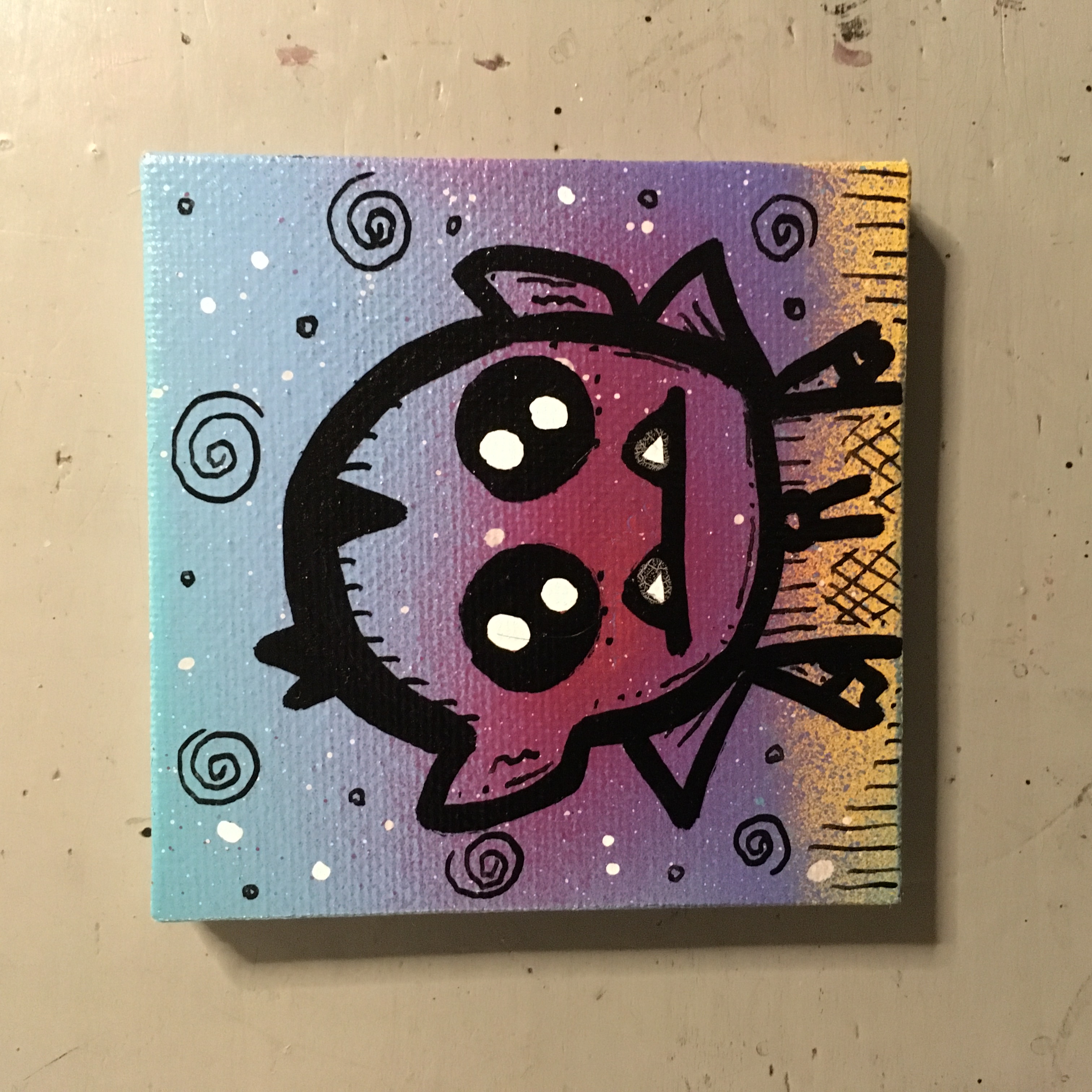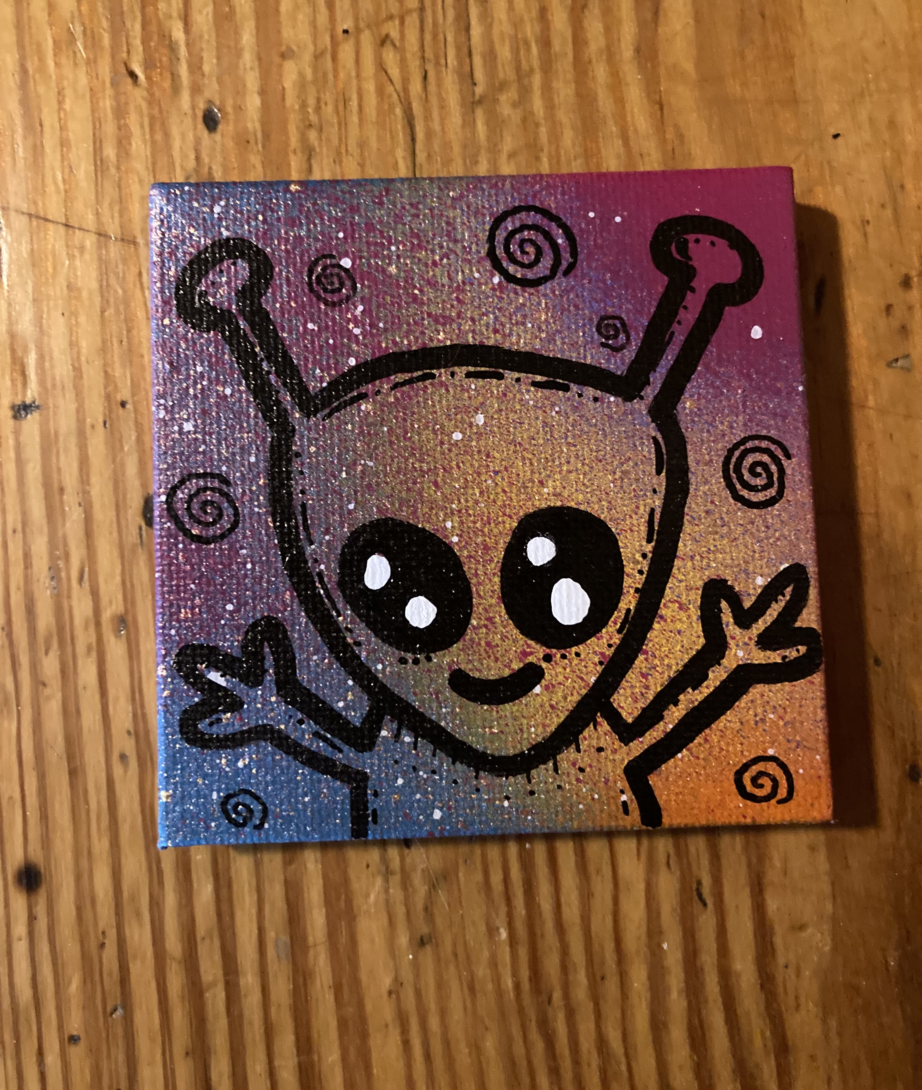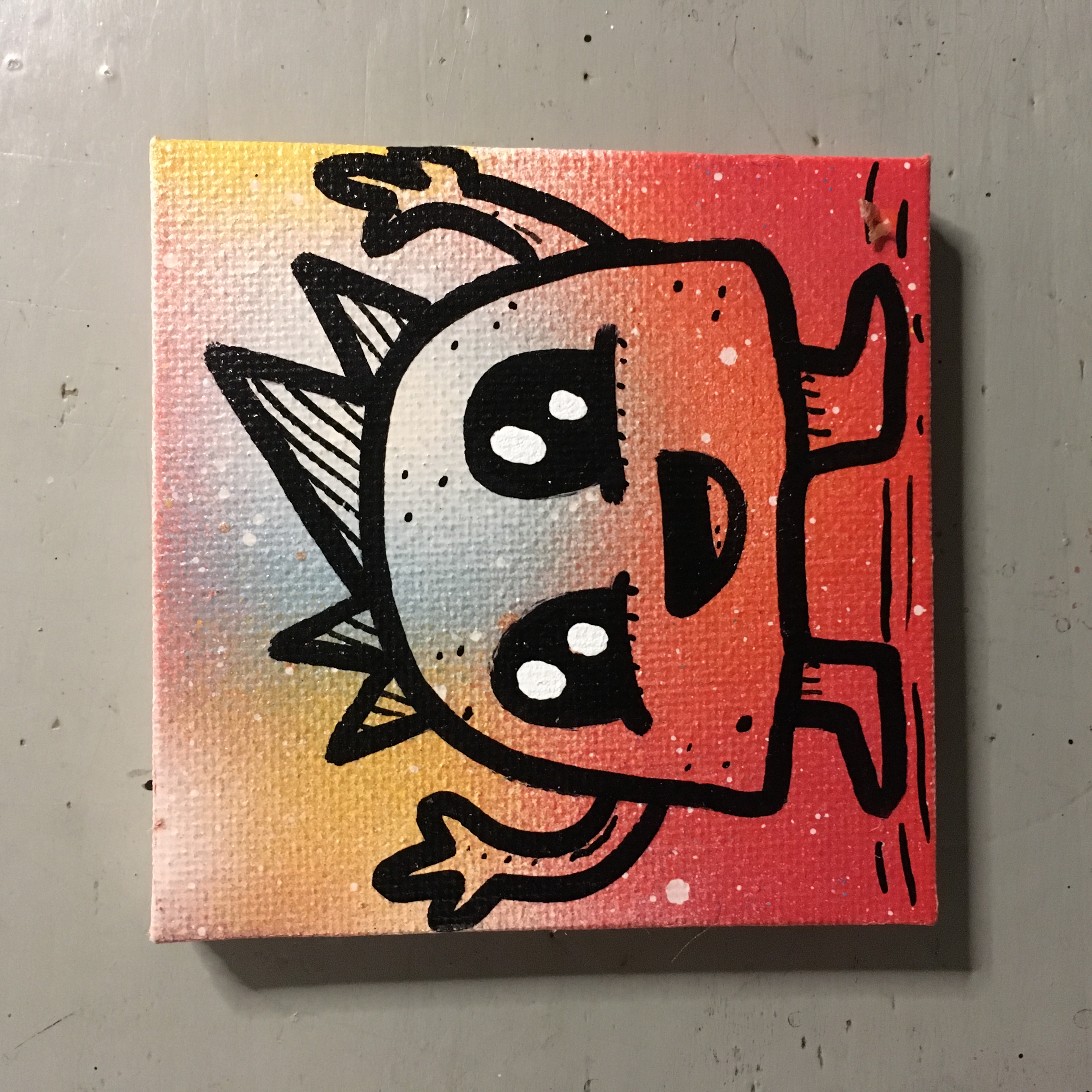 2899. "Sparkle Sun" 09/06/25 oil, ink and spray paint on 3" x 3" canvas $10 2898. "Earth Space" 09/06/25 oil, ink and spray paint on 3" x 3" canvas $10 2897. "Green Frog" 09/06/25 oil, ink and spray paint on 3" x 3" canvas Sold for $10 2896. "Dazzle Vampire" 09/06/25 oil, ink and spray paint on 3" x 3" canvas $10 2895. "Walking Taco" 09/06/25 oil, ink and spray paint on 3" x 3" canvas $10 2894. "Alien Hello" 09/06/25 oil, ink and spray paint on 3" x 3" canvas Sold for $10 2893. "Radiant Bird" 09/06/25 oil, ink and spray paint on 3" x 3" canvas $10 2892. "Goofy Dinosaur" 09/06/25 oil, ink and spray paint on 3" x 3" canvas $10 2891. "Sparkle Pumpkin" 09/06/25 oil, ink and spray paint on 3" x 3" canvas $10 2890. "Galactic Alien" 09/06/25 oil, ink and spray paint on 3" x 3" canvas Sold for $10 2889. "Glow Skeleton" Another View 08/14/25 oil, ink and spray paint on 3" x 3" canvas $10 2888. "Glow Lizard" Another View 08/14/25 oil, ink and spray paint on 3" x 3" canvas $10 2887. "Glow Snake" Another View 08/14/25 oil, ink and spray paint on 3" x 3" canvas $10 2886. "Glow Cat" Another View 08/14/25 oil, ink and spray paint on 3" x 3" canvas Sold for $10 2885. "Glow Jolly Alien" Another View 08/14/25 ink and spray paint on 3" x 3" canvas $10 2884. "Batman" 08/14/25 oil, ink and spray paint on 3" x 3" canvas $10 2883. "Bart" 08/14/25 oil, ink and spray paint on 3" x 3" canvas $10 2882. "Kirby" 08/14/25 oil, ink and spray paint on 3" x 3" canvas Sold for $10 2881. "GIR" 08/14/25 oil, ink and spray paint on 3" x 3" canvas Sold for $10 2880. "Wolverine" 08/13/25 oil, ink and spray paint on 3" x 3" canvas $10 2879. "Slimer" 08/13/25 oil, ink and spray paint on 3" x 3" canvas Sold for $10 2878. "Spongebob" 08/13/25 oil, ink and spray paint on 3" x 3" canvas $10 2877. "Spider-Man" 08/13/25 oil, ink and spray paint on 3" x 3" canvas $10 2876. "Beast" 08/13/25 oil, ink and spray paint on 3" x 3" canvas $10 2875. "Deadpool" 08/13/25 oil, ink and spray paint on 3" x 3" canvas $10 2874. "Giraffe Tongue" 08/05/25 oil, ink and spray paint on 3" x 3" canvas $10 2873. "Orange Ghost" 08/05/25 oil, ink and spray paint on 3" x 3" canvas $10 2872. "Big Lizard in My Backyard" 08/05/25 oil, ink and spray paint on 3" x 3" canvas $10 2871. "Sparkle Heart" 08/05/25 oil, ink and spray paint on 3" x 3" canvas $10 2870. "Little Earth" 08/05/25 oil, ink and spray paint on 3" x 3" canvas Sold for $10 2869. "Goofy Gremlin" 08/05/25 oil, ink and spray paint on 3" x 3" canvas Sold for $10 2868. "Neon Bear" 08/05/25 oil, ink and spray paint on 3" x 3" canvas $10 2867. "Tiny Frog" 08/05/25 oil, ink and spray paint on 3" x 3" canvas Sold for $10 2866. "Frumpy Pumpkin" 08/05/25 oil, ink and spray paint on 3" x 3" canvas Sold for $10 2865. "Yellow Star" 08/05/25 oil, ink and spray paint on 3" x 3" canvas $10 2864. "Spider-Man" 08/05/25 oil, ink and spray paint on 3" x 3" canvas Sold for $10 2863. "The Incredible Hulk" 08/05/25 oil, ink and spray paint on 3" x 3" canvas $10 2862. "Wolverine" 08/05/25 oil, ink and spray paint on 3" x 3" canvas $10 2861. "Serene Jellyfish" 08/05/25 oil, ink and spray paint on 3" x 3" canvas $10 2860. "Purple Vampire" 08/05/25 oil, ink and spray paint on 3" x 3" canvas Sold for $10 2859. "Homer" 08/05/25 oil, ink and spray paint on 3" x 3" canvas $10 2858. "Batman" 08/05/25 oil, ink and spray paint on 3" x 3" canvas Sold for $10 2857. "Raph" 08/05/25 oil, ink and spray paint on 3" x 3" canvas Sold for $10 2856. "Mike" 08/05/25 oil, ink and spray paint on 3" x 3" canvas $10 2855. "Leo" 08/05/25 oil, ink and spray paint on 3" x 3" canvas $10 2854. "Don" 08/05/25 oil, ink and spray paint on 3" x 3" canvas $10 2853. "Blue Mushroom" 08/05/25 oil, ink and spray paint on 3" x 3" canvas Sold for $10 2852. "Red Gum Drop" 08/05/25 oil, ink and spray paint on 3" x 3" canvas $10 2851. "Neon Sun" 08/05/25 oil, ink and spray paint on 3" x 3" canvas $10 2850. "Orange Robot" 08/05/25 oil, ink and spray paint on 3" x 3" canvas Sold for $10 2849. "Bart" 08/05/25 oil, ink and spray paint on 3" x 3" canvas Sold for $10 2848. "Alien Hug" 08/05/25 oil, ink and spray paint on 3" x 3" canvas Sold for $10 2847. "Brash Dino" 08/05/25 oil, ink and spray paint on 3" x 3" canvas Sold for $10 2846. "Blue Cat" 08/05/25 oil, ink and spray paint on 3" x 3" canvas Sold for $10 2845. "Purple Star" 08/05/25 oil, ink and spray paint on 3" x 3" canvas $10 2844. "Glow Bear" Another View 08/04/25 ink and spray paint on 3" x 3" canvas $10 2843. "Glow Frank" Another View 08/04/25 ink and spray paint on 3" x 3" canvas Sold for $10 2842. "Glow Octopus" Another View 08/04/25 ink and spray paint on 3" x 3" canvas Sold for $10 2841. "Glow Snail" Another View 08/04/25 ink and spray paint on 3" x 3" canvas Sold for $10 2840. "Glow Jellyfish" Another View 08/04/25 ink and spray paint on 3" x 3" canvas Sold for $10 2839. "Glow Bart" Another View 08/04/25 ink and spray paint on 3" x 3" canvas $10 2838. "Glow Gum Drop" Another View 08/04/25 ink and spray paint on 3" x 3" canvas Sold for $10 2837. "Glow Snake" Another View 08/04/25 ink and spray paint on 3" x 3" canvas Sold for $10 2836. "Glow Goofy Dog" Another View 08/04/25 ink and spray paint on 3" x 3" canvas $10 2835. "Glow Gremlin" Another View 08/04/25 ink and spray paint on 3" x 3" canvas $10 2834. "Glow Fuzzy" Another View 08/04/25 ink and spray paint on 3" x 3" canvas $10 2833. "Glow Mushrooms" Another View 08/04/25 ink and spray paint on 3" x 3" canvas Sold for $10 2832. "Glow Cool Lizard" Another View 08/04/25 ink and spray paint on 3" x 3" canvas $10 2831. "Glow Dog" Another View 08/04/25 ink and spray paint on 3" x 3" canvas $10 2830. "Glow Bunny" Another View 08/04/25 ink and spray paint on 3" x 3" canvas $10 2829. "Glow Grumble" Another View 08/04/25 ink and spray paint on 3" x 3" canvas $10 2828. "Glow Bronto" Another View 08/04/25 ink and spray paint on 3" x 3" canvas $10 2827. "Glow Bee" Another View 08/04/25 ink and spray paint on 3" x 3" canvas $10 2826. "Glow Gloom Ghost" Another View 